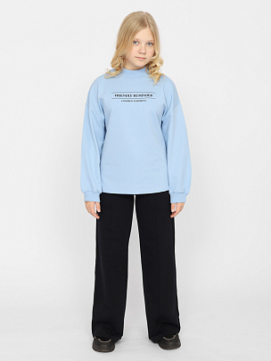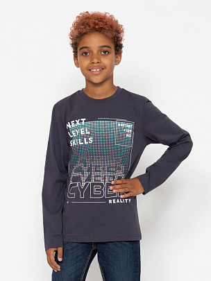 Футболка прямого силуэта удлиненная. Короткий цельнокройный рукав. Круглая горловина обработана узкой притачной обтачкой из рибаны с эластаном. Полочка декорирована принтом с использованием красок с блеском "воображение правит миром". Разрезы по бокам.